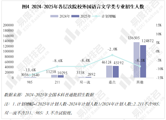 就业冲击带来的影响已在招生录取中直观体现,对于高校来讲,外语类专业需要一场大变革,大幅撤销多余计划并及时开设如“外语+