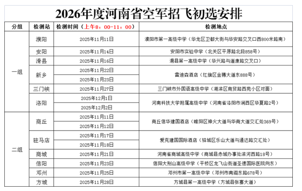 3.定选(2026年上半年)。分高考前、高考后两个阶段,由空军招飞局组织对符合推荐条件的考生进行