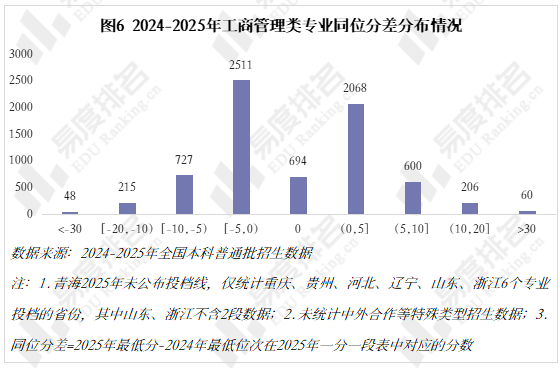 49%的专业分数下降,41%的专业分数有所上升,其中近14%的专业下降超过5分,12%的专业上涨超过5分,工商管理类专业的整体录取分数小幅下降。工商管理类专业的录取分数已经连续下降多年,而到了2025年仍有下降空间。