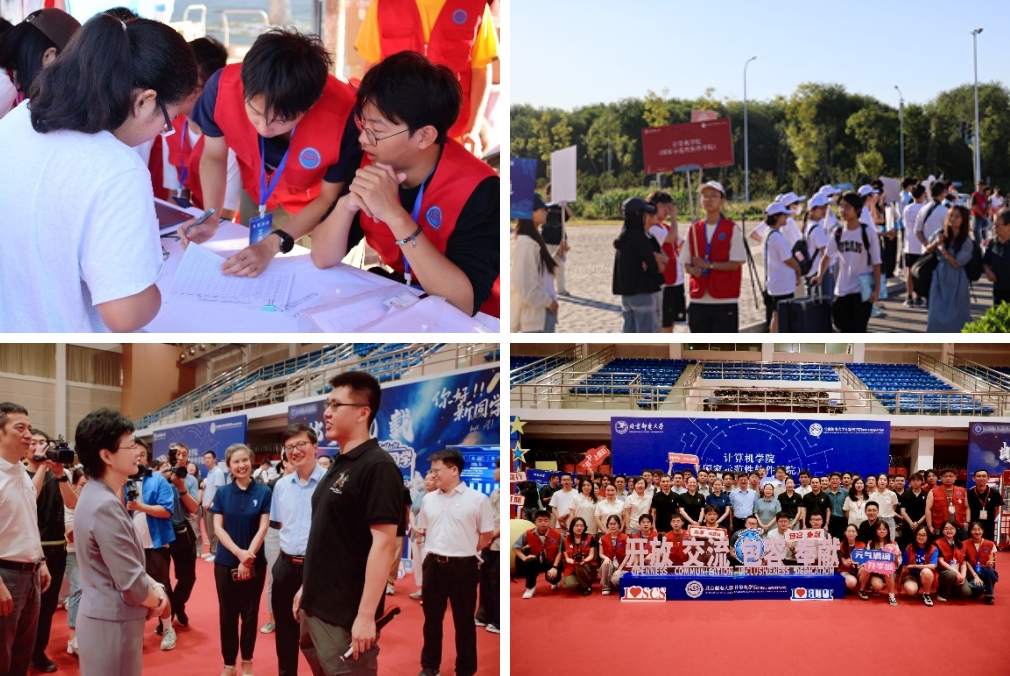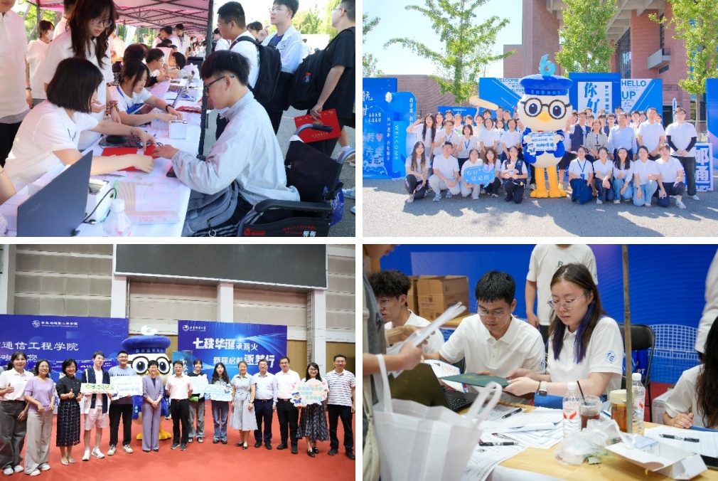 校党委书记续梅、校长徐坤、副校长任雄飞、党委副书记马启华、副校长彭木根率队来到迎新报到现场,实地查看报到流程衔接、服务保障落实情况,与前来报到的新生及家长亲切交流,详细询问入学准备、专业认知等情况,勉励新生在这片科技沃土上传承薪火、逐梦前行。校领导来到各学院报到台,向迎新一线的教职工、志愿者致以问候,叮嘱大家做好引导服务,让新生和家长感受到学校的温暖,展现北邮人良好的精神风貌。