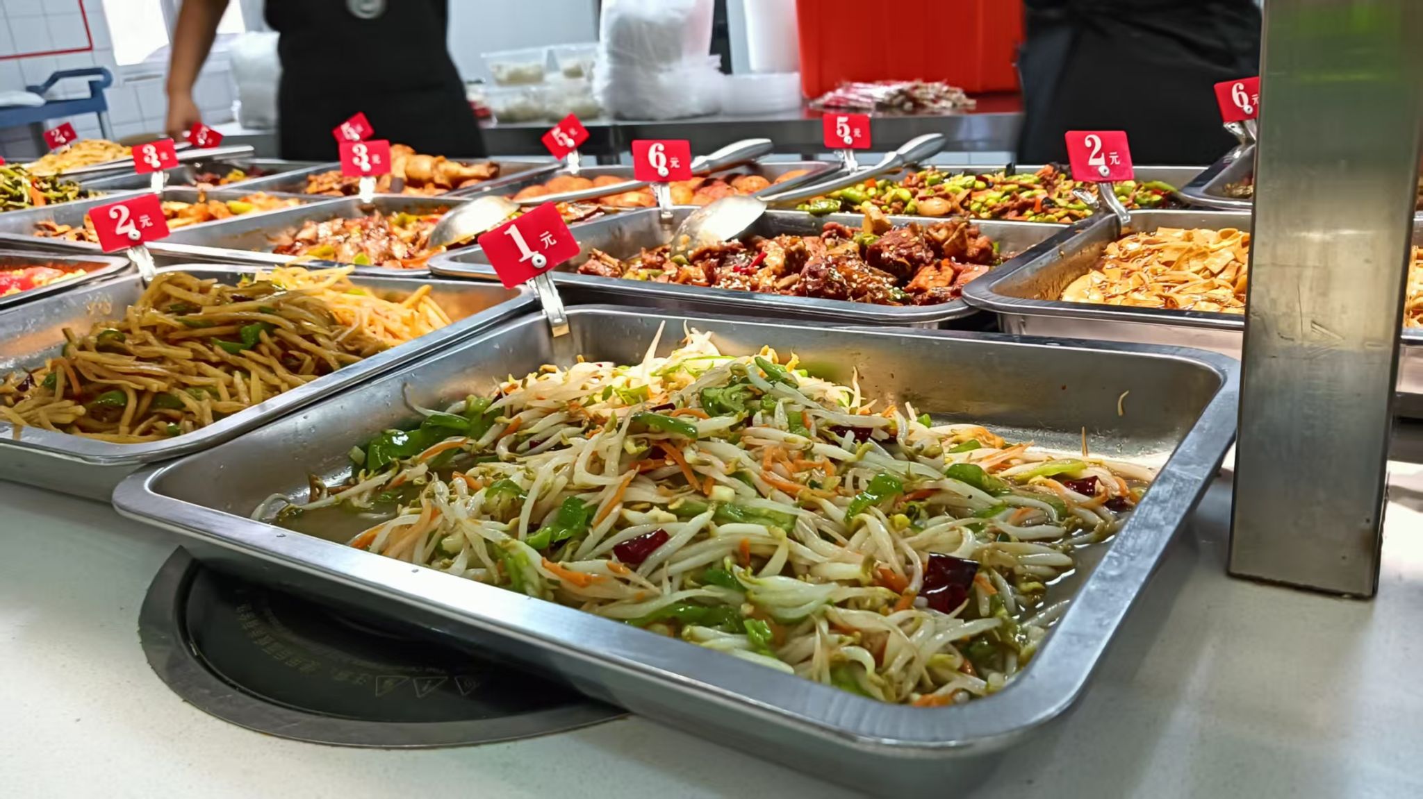“我午餐七八元就能吃饱,真是太惊喜了!”王子硕一边用餐一边高兴地说,“像这份醋烹绿豆芽,味道好又实惠,才一块钱!再喝上一碗免费的热汤,一顿饭下来既营养又省钱,感觉特别温暖。以前吃饭总担心开销大,现在好了,心里特别踏实,爸妈也放心。”