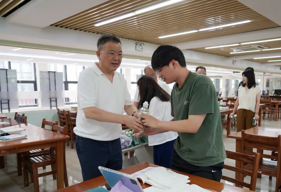 李勇一行首先来到学校图书馆,与留校学生亲切交流,详细了解大家备战考研、参加学科竞赛及科研项目等情况,并送上水果、饮料等慰问品。李勇叮嘱学子们务必珍视身心健康,注意防暑降温,做到张弛有度、劳逸结合。同时他希望大家充分利用好暑假的宝贵时间,锚定目标、勤奋学习,不断提升专业能力和综合素质,为未来的职业发展打下坚实的基础。