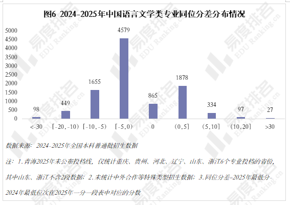 23%的专业分数上涨,68%的专业分数有所下降,其中近22%的专业下降超过5分,5%的专业上涨超过5分,中国语言文学类专业的整体录取分数大幅下降。在理工科、交叉学科热门专业的对比下,传统文科的竞争优势减弱,到了2025年仍有下降空间。