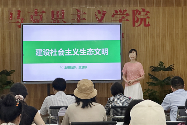 此次集体备课会聚焦《习近平新时代中国特色社会主义思想概论》课程。备课会上,该课程授课教师廖慧琼围绕“建设社会主义生态文明”这一主题,进行备课说课展示。她从教学分析、教学策略、教学过程、教学反思四个维度,系统梳理了课程设计的理论依据与实践路径,生动阐释习近平生态文明思想的科学内涵与时代价值。同时结合生动的案例和最新的政策动态,介绍了如何面向不同专业的学生,开展分众化教学的举措。与会教师围绕廖慧琼老师的说课设计展开了热烈的交流与讨论。