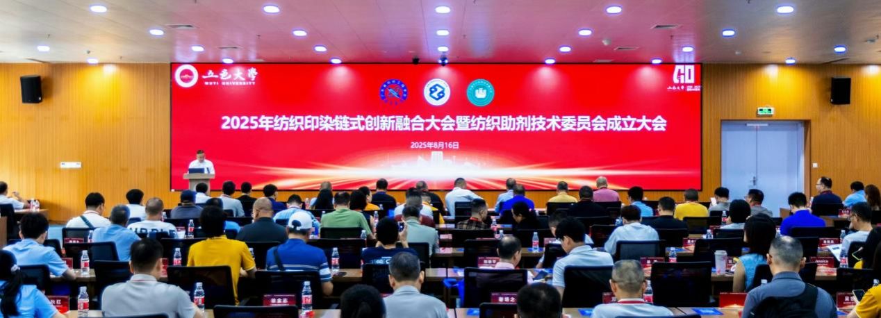 8月16日,“2025纺织印染链式创新融合大会暨广东省纺织助剂技术委员会成立大会”在五邑大学召开。本次大会以“全产业链、创新求变、融合发展”为主题,由广东省纺织工程学会、五邑大学纺织科学与工程学院联合主办,广东省纺织助剂技术委员会承办。校党委常委、副校长董超俊,广东省纺织工程学会常务副理事长魏保平、常务副理事长杨爱民、副理事长兼秘书长刘干民,东华大学化学与化工学院教授蔡再生,江门海关技术中心主任蒋小良,纺织科学与工程学院教师代表以及国内纺织印染、助剂、装备、检测等领域的学术专家、企业精英及相关机构代表等200余人参加会议。