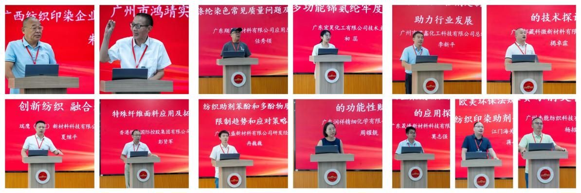 江门海关技术中心、广西纺织印染企业促进会、香港锦兴国际控股集团有限公司、瑞鹰(福建)新材料科技有限公司等13家单位代表围绕“纺织印染产业的绿色转型、技术创新与市场趋势”等内容进行深入交流,共同探讨行业未来的发展方向与实践路径。