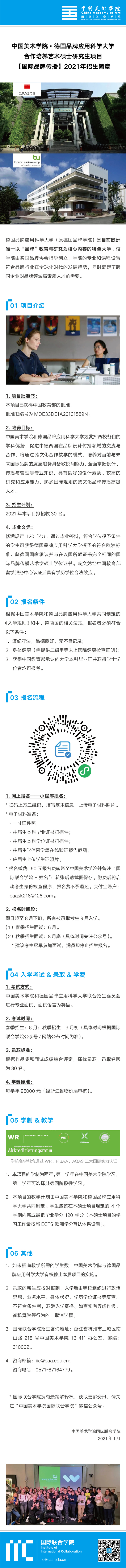 中国美术学院·德国品牌应用科学大学合作培养艺术硕士研究生项目【国际品牌传播】2021年招生简章