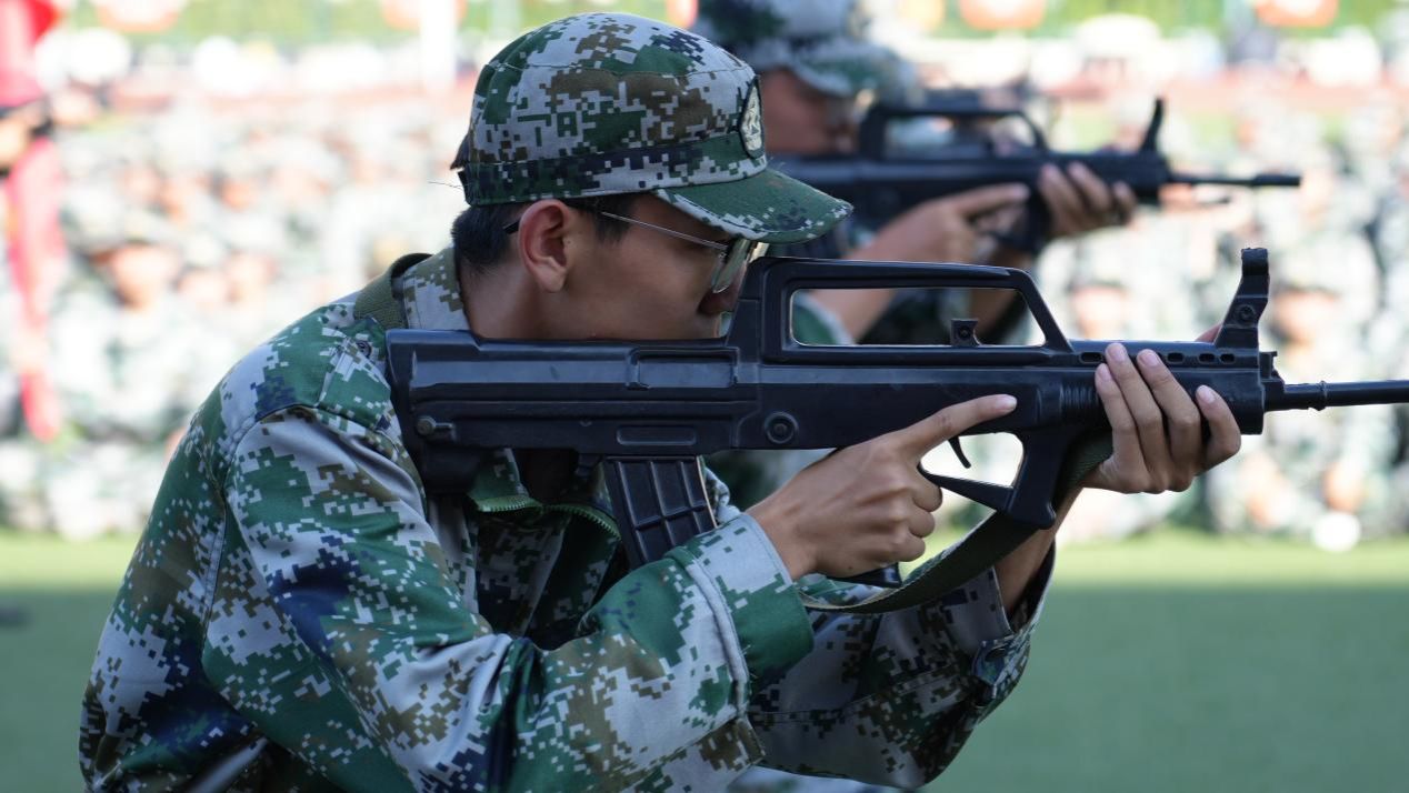 大会在庄严的国歌声中拉开帷幕,全体师生肃立齐唱,肃穆的氛围中洋溢着浓厚的爱国情怀。分列式表演首先登场,同学们步伐整齐、目光坚毅、口号响亮,展现出经过军事训练洗礼后的严明纪律与青春风采。三大特色方阵依次亮相:医疗兵方阵动作规范、协同有序;持枪战术方阵气势如虹、威武铿锵;军体拳方阵出拳凌厉、虎虎生风。武术表演《武韵乾坤》刚柔并济,招式中传递出中华武术的深厚底蕴与青春力量。团体操表演规模宏大,通过巧妙的编排融入校训、校史年份和中国地图等核心元素,生动串联起学校的文化传承与学生的家国情怀。各表演方阵以出色的表现,充分展现2025级新生团结协作、斗志昂扬的精神面貌。