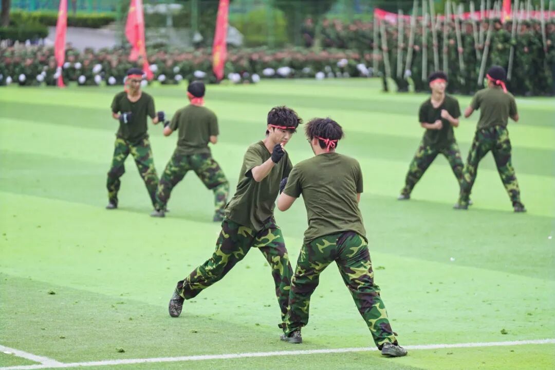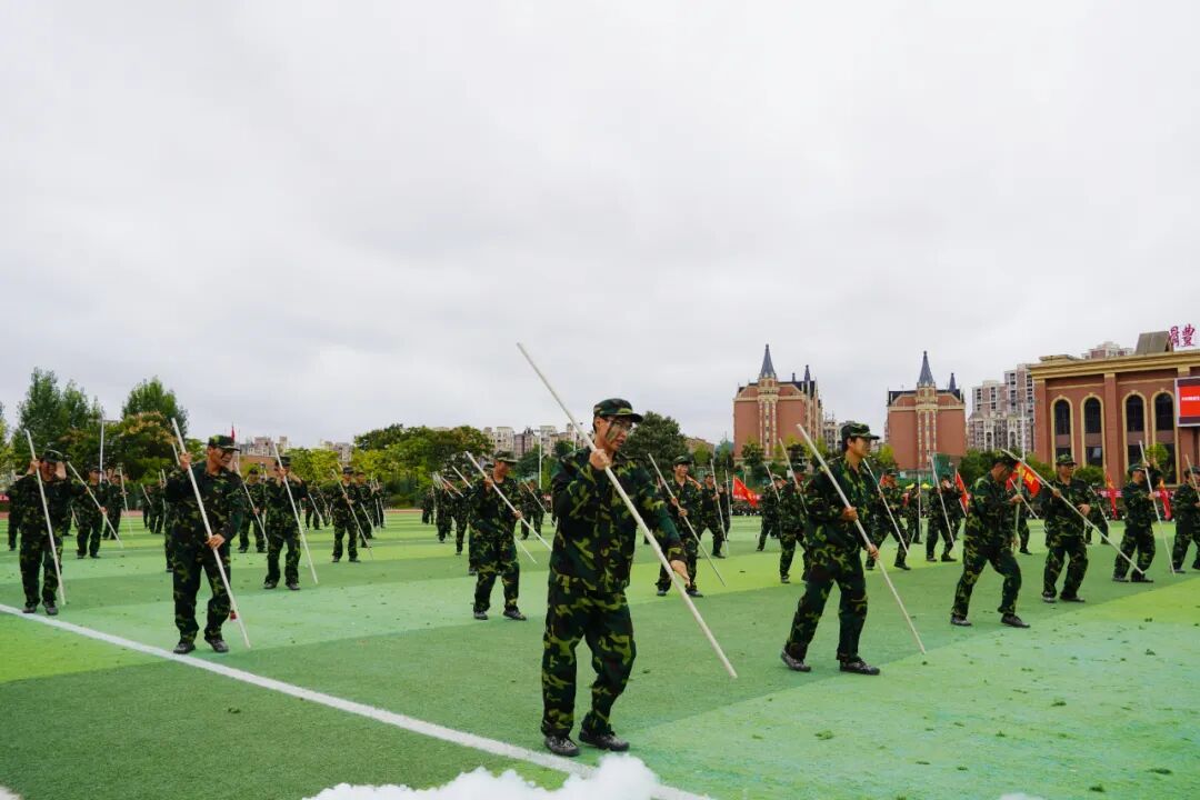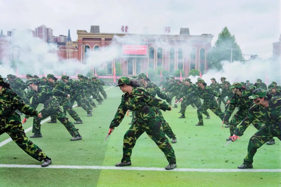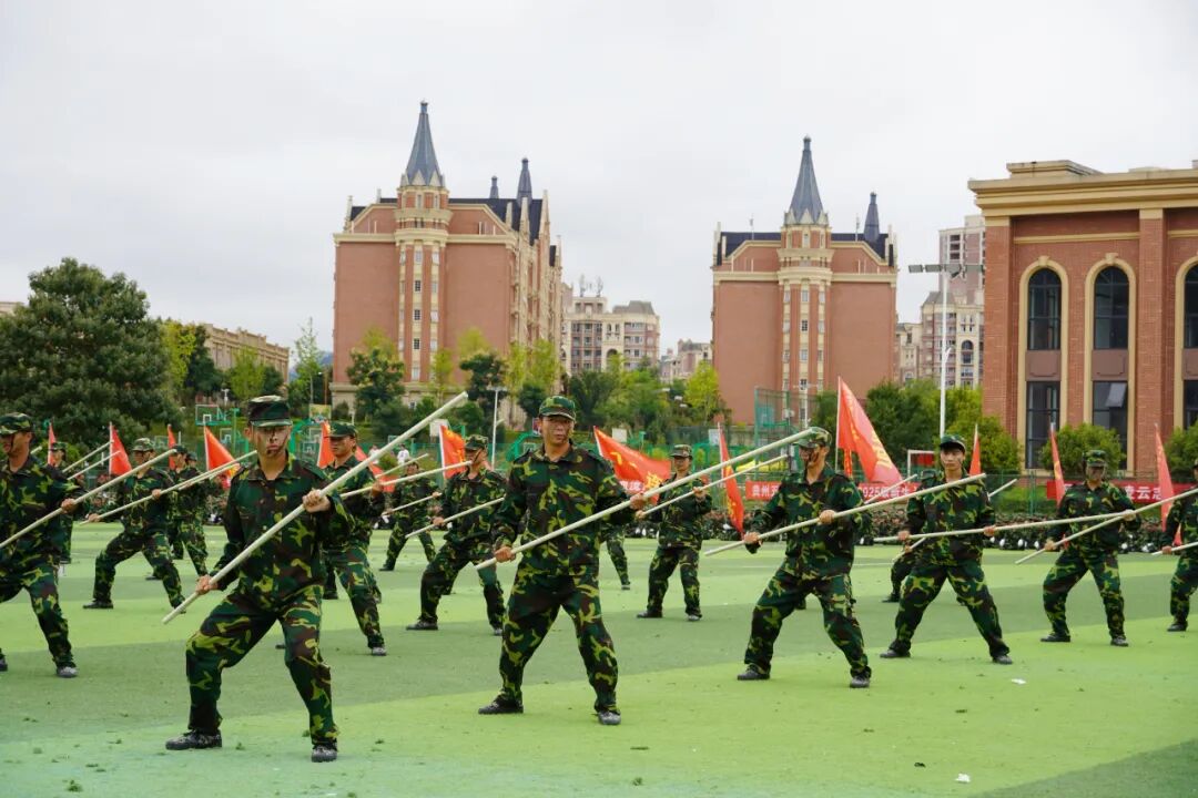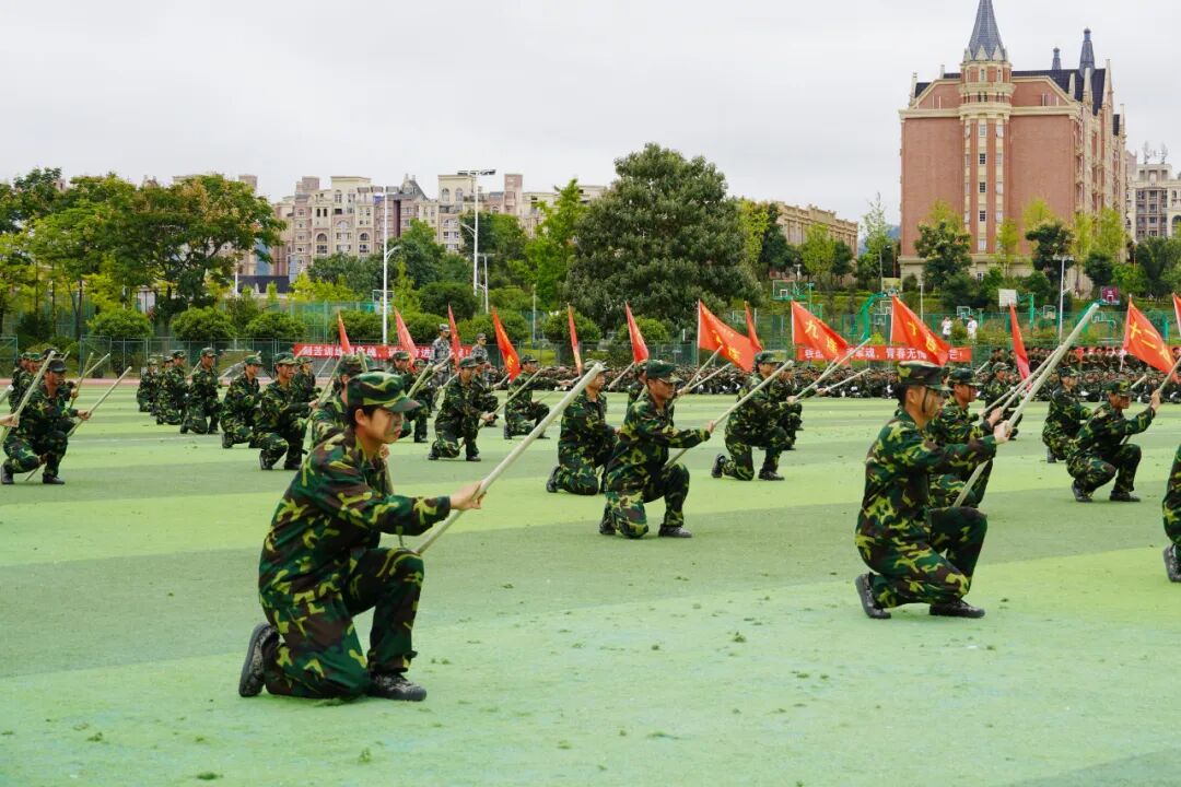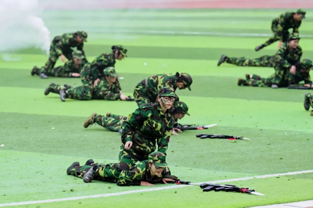昂首挺胸,气势如虹。此次新生军训汇报中,军训团28个连队进行了分列式、匕首操、军体拳、棍术、战术综合演练等军训成果展示。