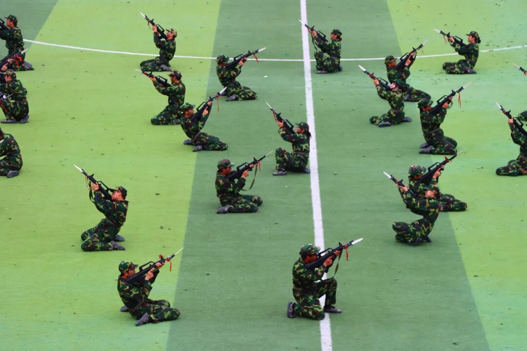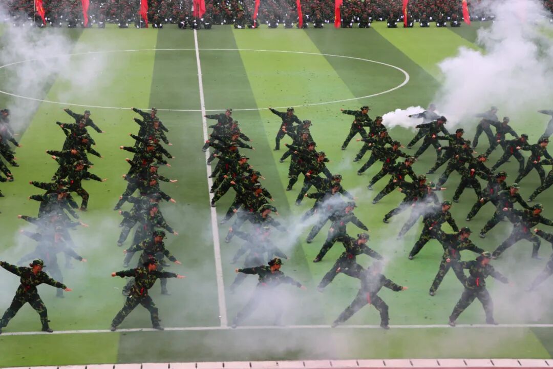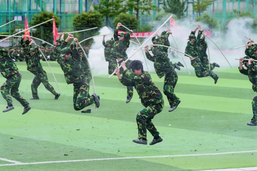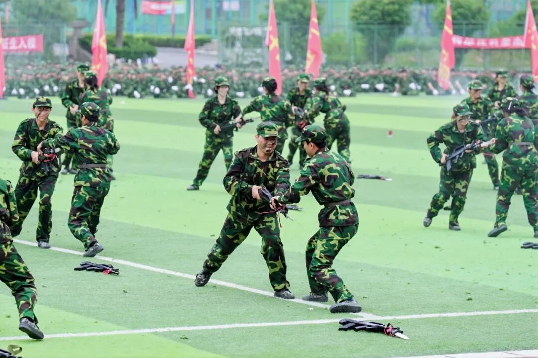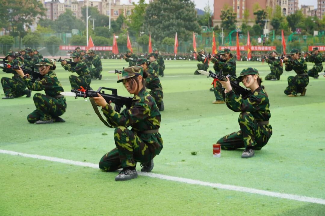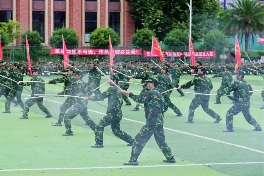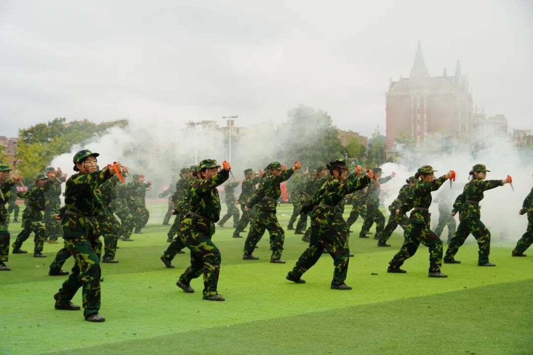 昂首挺胸,气势如虹。此次新生军训汇报中,军训团28个连队进行了分列式、匕首操、军体拳、棍术、战术综合演练等军训成果展示。