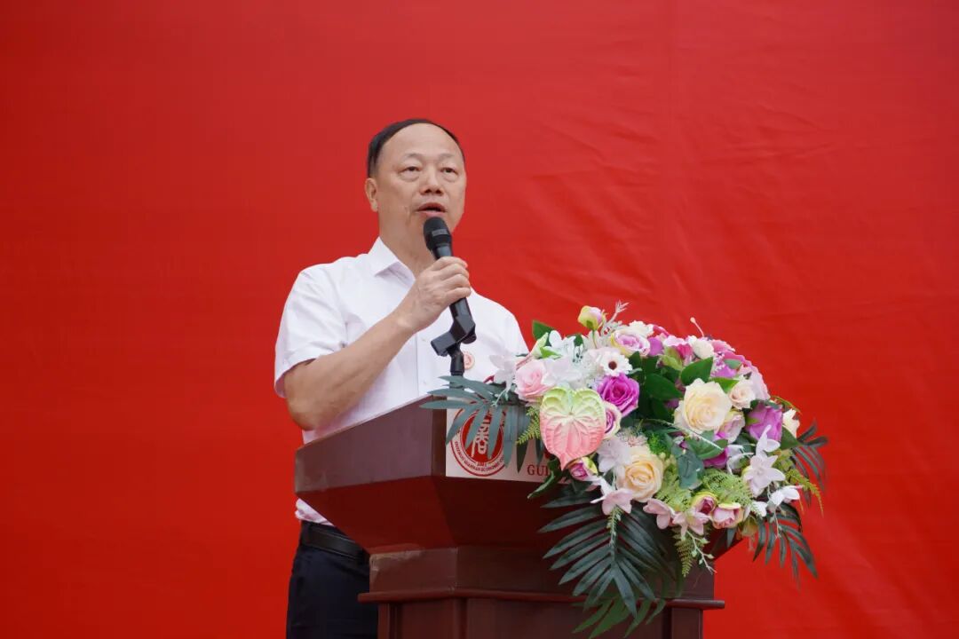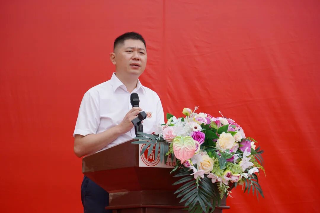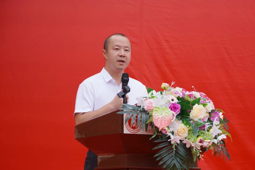 贵州省惠水县人民武装部陈万平,贵州黔南经济学院党委副书记、校长周游,党委副书记、副校长谢立达,党委副书记、纪委书记李庭宇,副校长苏林、万飞、舒煜、汪上达、郭小琴,各职能部门负责人,各二级学院院长、党委书记,全体新生辅导员及2025级新生参加。舒煜主持大会。