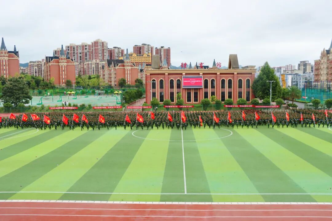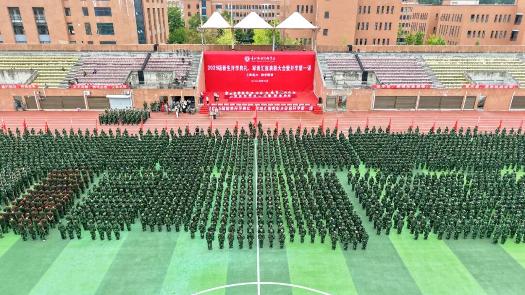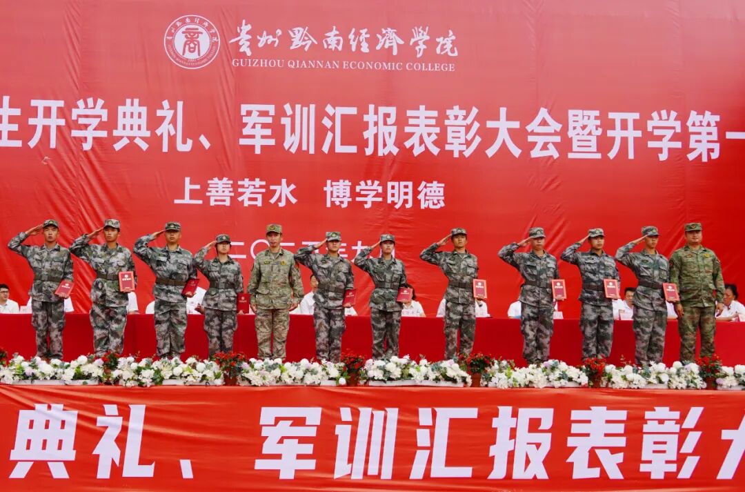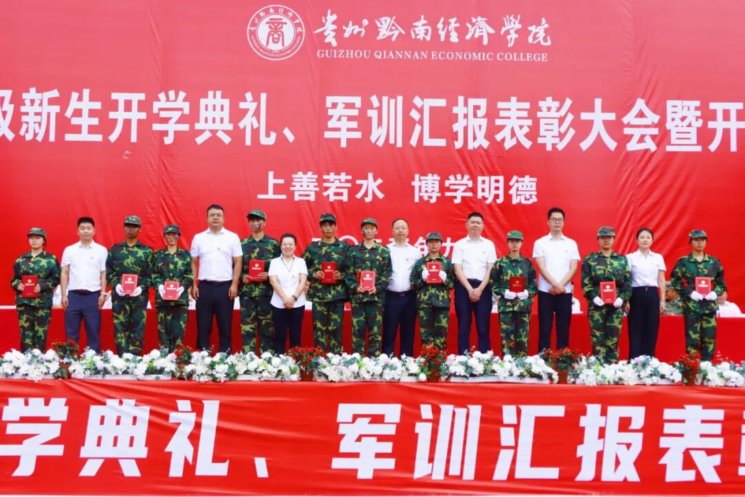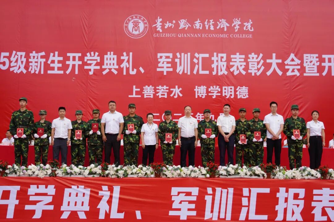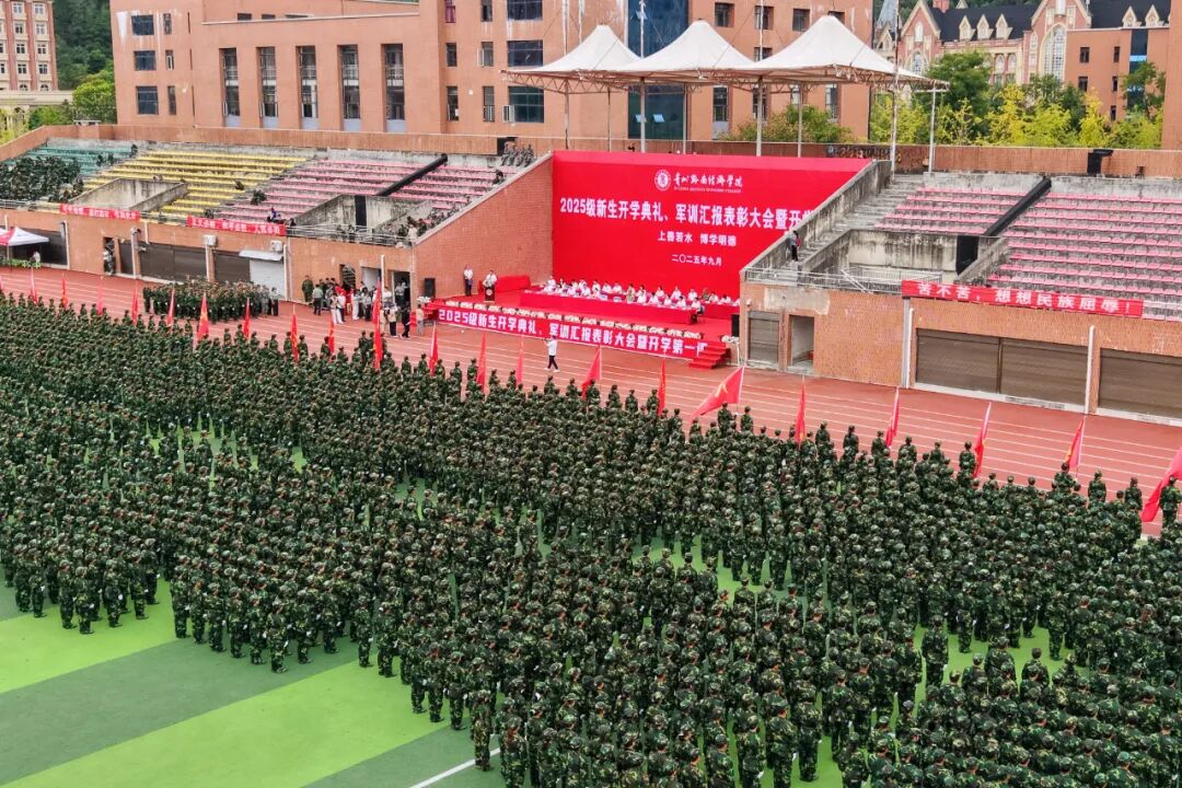 9月22日上午,贵州黔南经济学院2025级新生开学典礼、军训汇报表彰大会暨开学第一课在学校足球场举行。