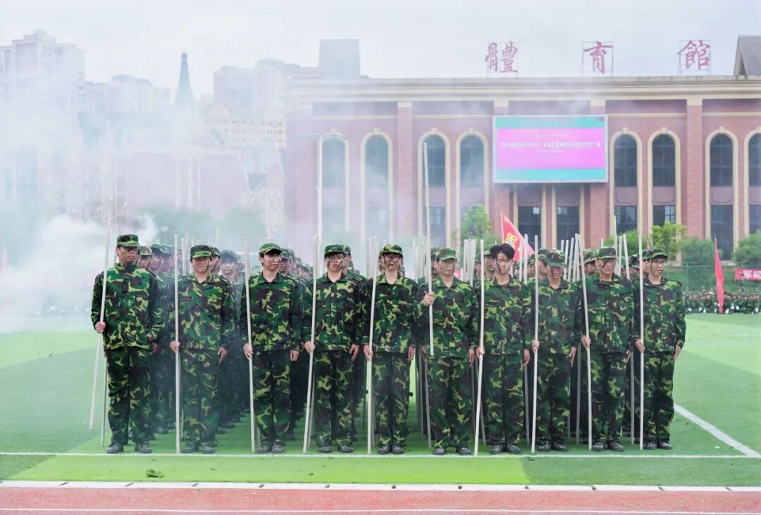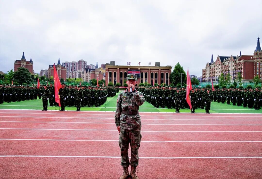 陈万平作军训总结讲话,他表示,军训是同学们的大学第一课,在国防教育课、军训期间,同学们顶烈日、冒酷暑,以军人标准要求自己,练就队列动作、掌握军事技能,磨砺意志、锤炼品格,展现昂扬风貌,证明青春有责任担当。他鼓励同学们,要将军训收获融入学习生活,将个人理想融入国家发展,成长为新时代好青年,为强国强军贡献力量。