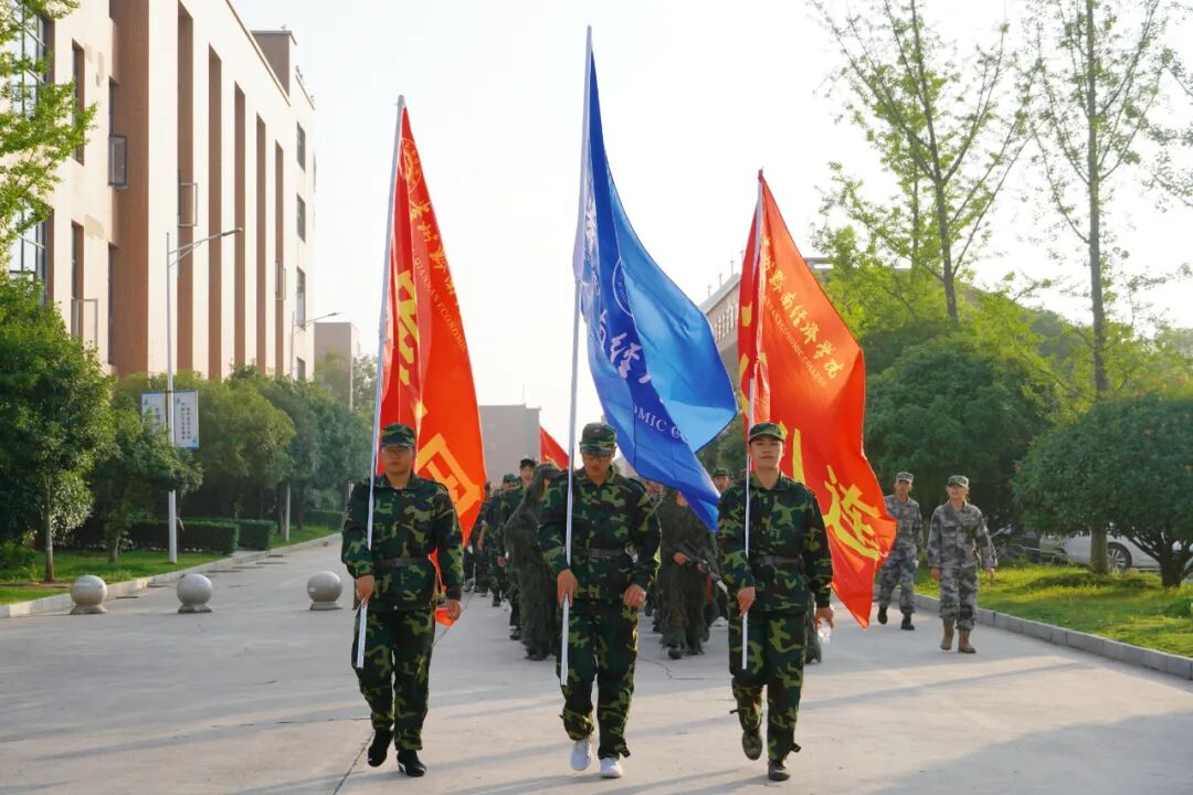 并肩迈步的青春旅途乘风破浪的漫漫征程身着迷彩昂扬的经院学子把最鲜活、最热血的脚印