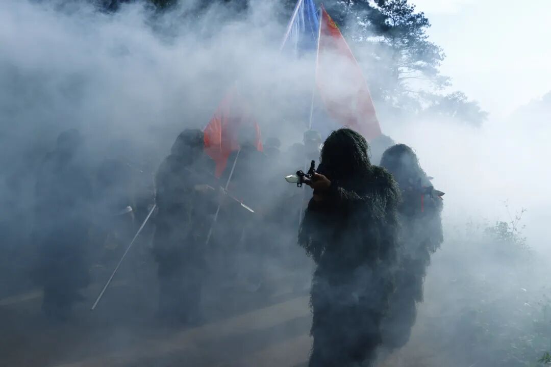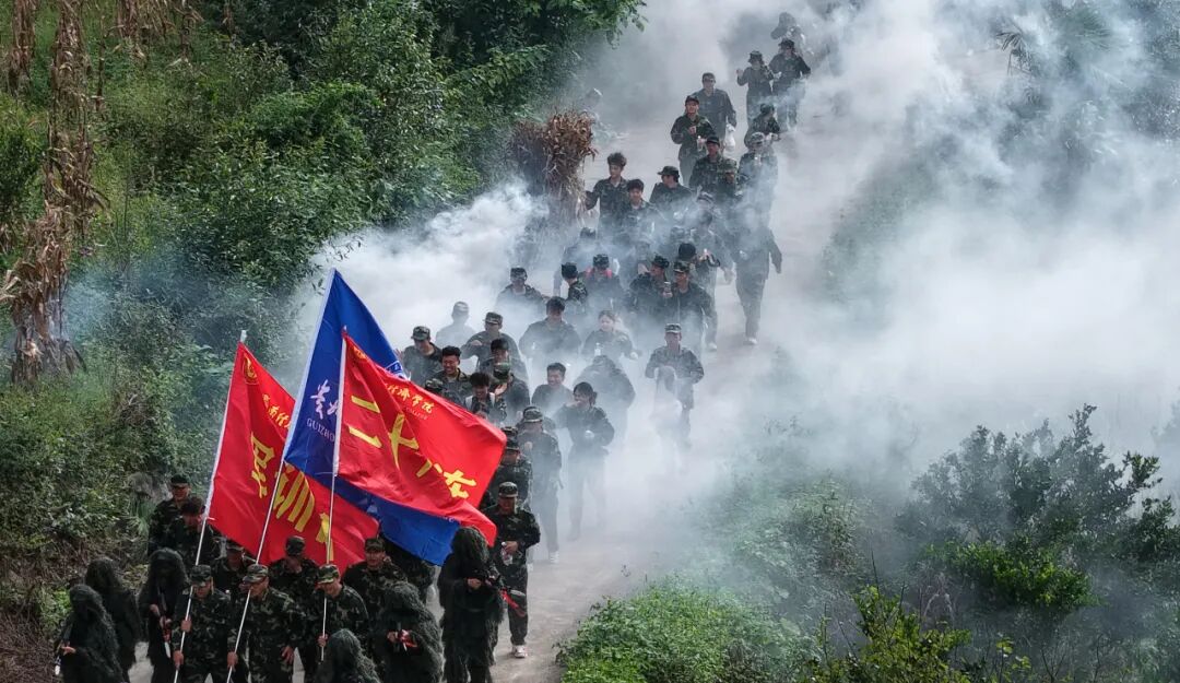 赤旗挥舞,迷彩成行