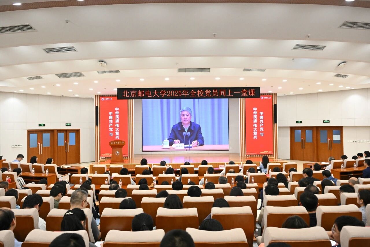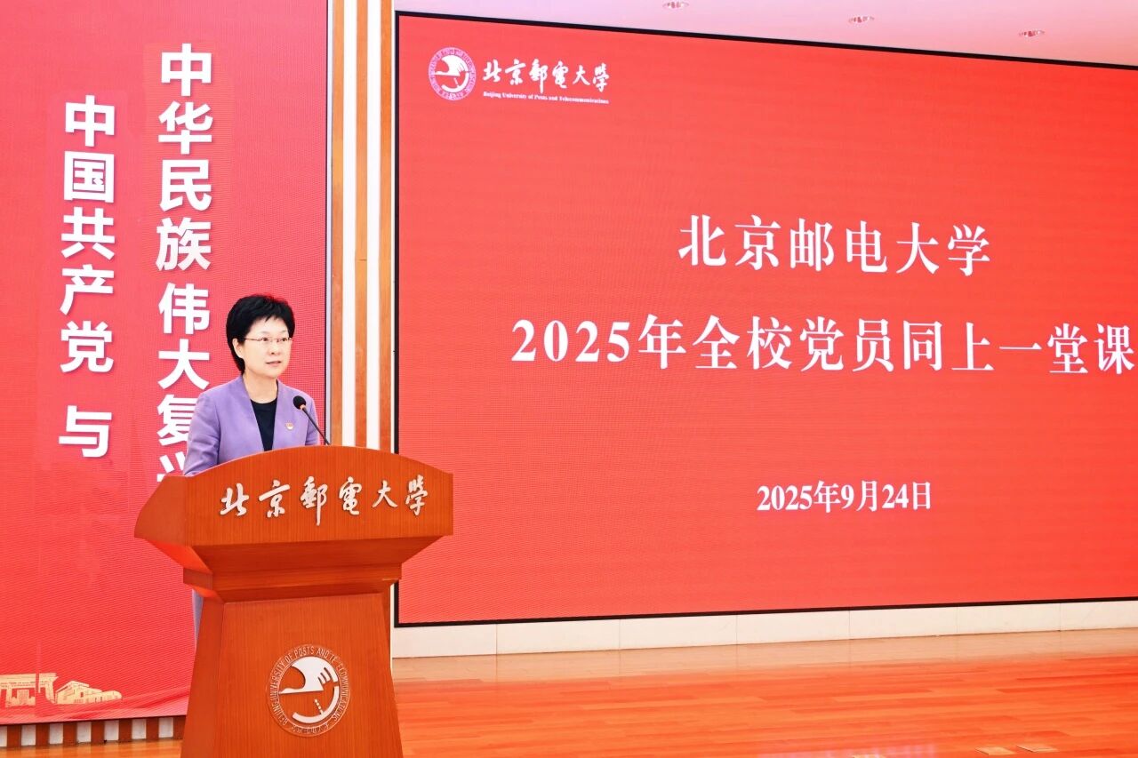 9月24日下午,北京邮电大学举办2025年下半年全校党员“同上一堂课”第一课,6800余名师生党员在海淀校区、沙河校区、海南校区等49个会场集中观看中央党校(国家行政学院)分管日常工作的副校长(副院长)谢春涛同志主讲的《中国共产党与中华民族伟大复兴》视频课程。教育部党建联络员林志华同志、兄弟高校有关同志到校指导,校党委书记续梅主持培训。