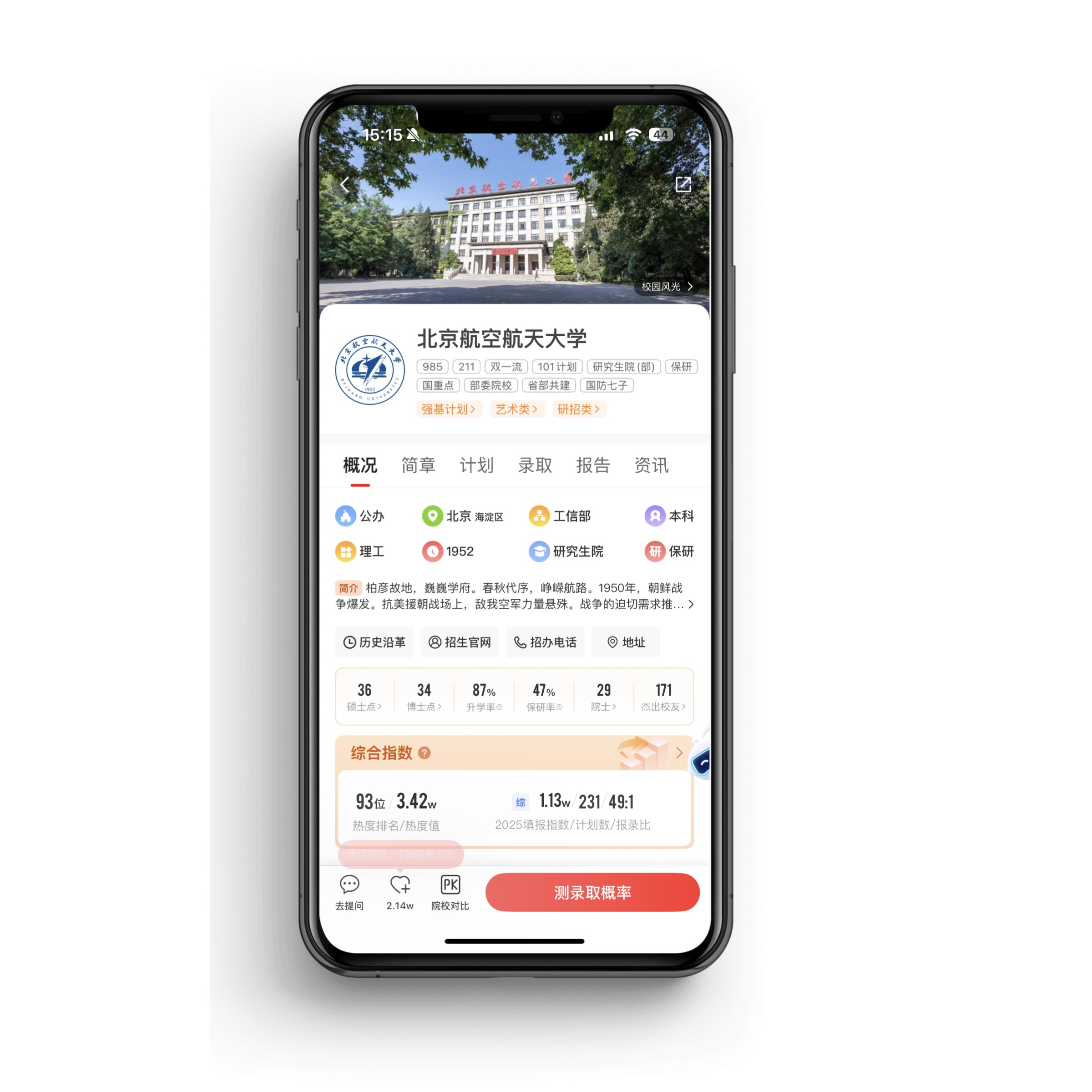 随着全球航空航天技术的飞速发展,人工智能、大数据等新兴技术与航空航天的深度融合,北航在培养航空航天人才方面肩负着更加重要的使命。学校的优势专业——航空航天工程,紧密结合行业实际需求,将前沿技术如人工智能、大数据分析等融入课程体系,培养学生在航空航天系统设计、运行、维护等方面的能力。