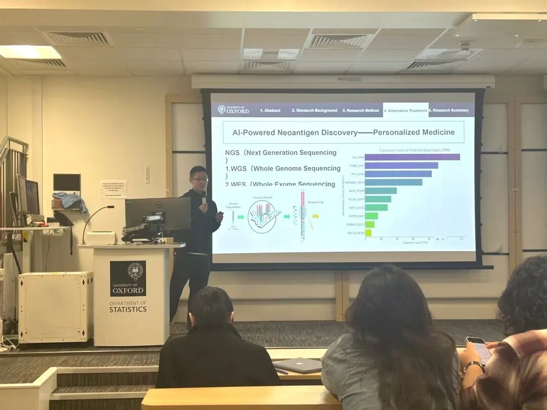 项目的尾声是一场学术展示。我选择了“创新型mRNA肿瘤疫苗疗法”这一前沿主题,尝试将免疫学与药物设计相结合,勾勒出一个面向未来的研究蓝图。演讲结束后,两位评委给予了我积极评价和专业建议,这让我更加确信,清晰的逻辑与勇敢的表达能够跨越文化隔阂,让思想产生共鸣。