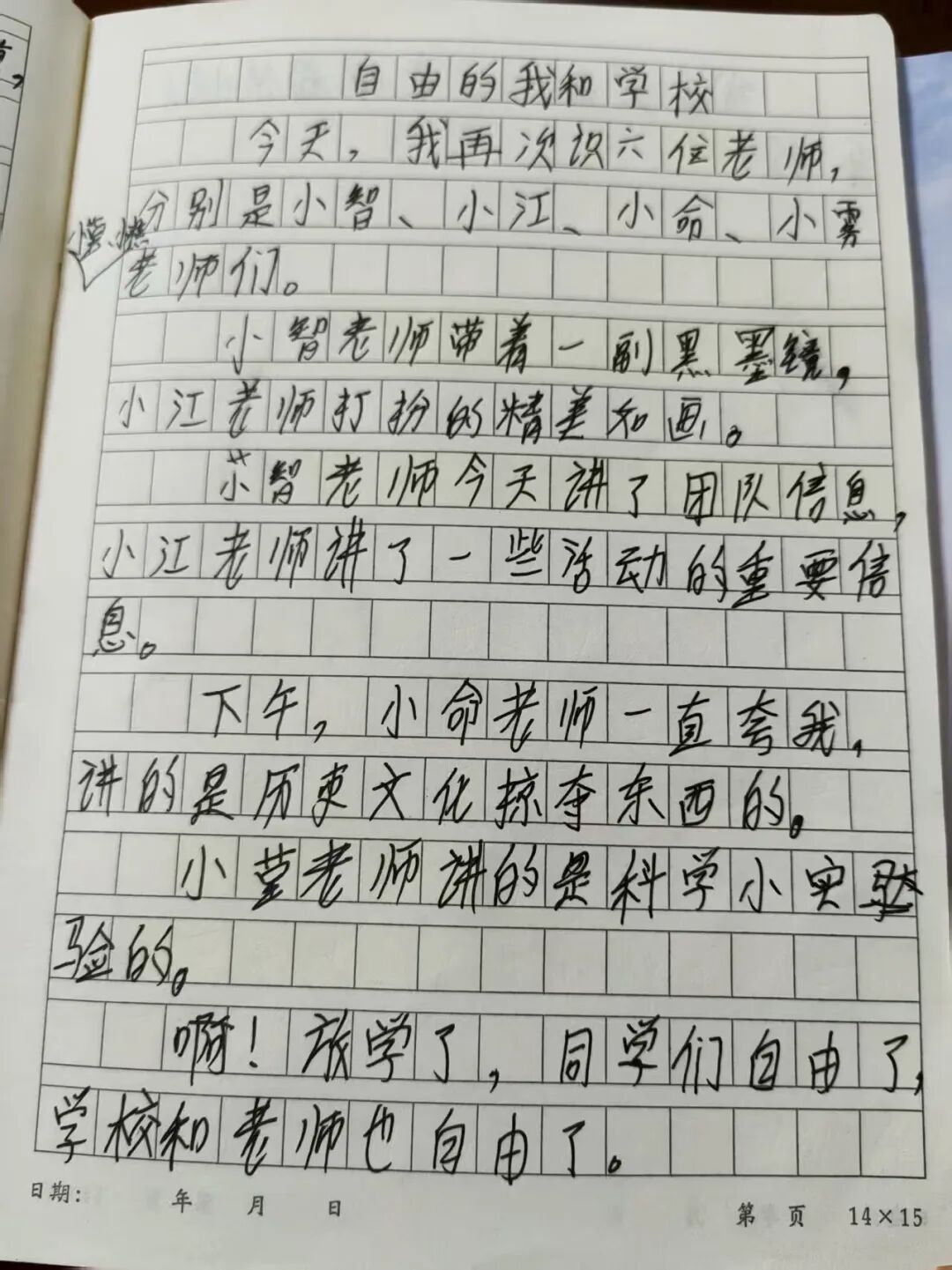 队员与孩子们的互动,还藏在一张张学习单里。“突然见到我们这些新来的老师,孩子们其实一开始还不太信任。”实践队队长、2023级环境工程专业的黄彦伟说。为了拉近与每个孩子的距离,实践队在学习单里专门设计了“小天地”和“奇思妙想”两个板块。“一开始,几乎没人写,但上了几次课后,越来越多同学愿意发问,不仅问学习上的问题,生活里不理解的事也会写下来。”队员们每天都会认真批阅学习单,及时给出解释与帮助。纸笔间的互动,不知不觉增进了彼此的情谊。