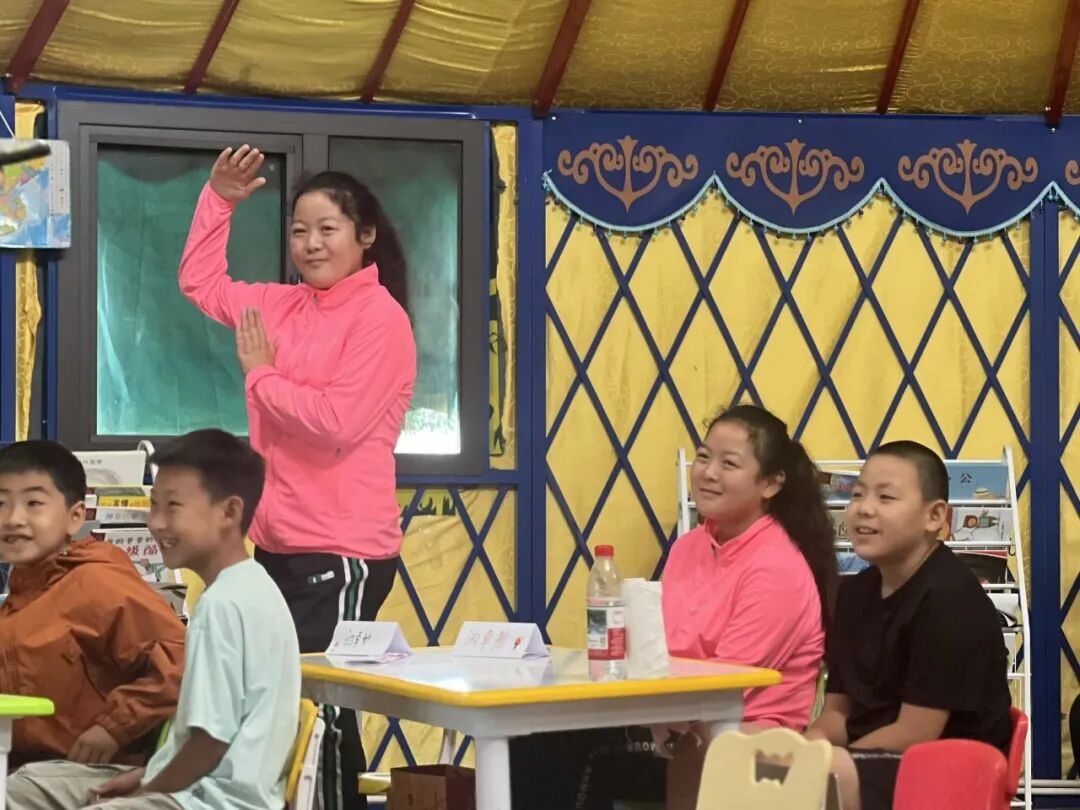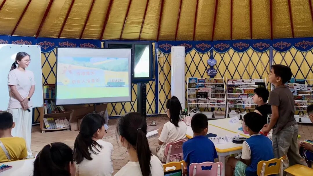 2025年7月,这顶蒙古包迎来了新的短期建设者。2023级国学精英班的吴梦琪是“时光之灵”队的一员,她与三位伙伴一同踏上这片土地,走进农场里的蒙古包,在这里开展拼贴诗课、书法课、扎染课等多元课程,让孩子们能够“以新的视角认识世界,产生主动探索世界的欲望。”对她而言,支教不仅是一场远行,更是一次与自我、与他人、与土地之间的深度联结。