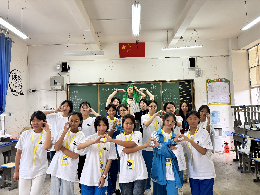 为了这次电影节,志愿者们提前一个多月开始准备,撰写文字稿、设计展板、规划红毯环节,尽管效果不如专业电影节“炸裂”,但对当地学生而言,这是一次能接触到“影视圈”的宝贵体验。2024级英语专业的龙雪莹是其中一部微电影的总导演,她说:“遇到的困难挺多的,比如一开始不熟悉拍摄方法,大多数第一次拍摄的镜头都不能用,需要重新补拍,还得注意细节上与原版对应。”尽管设备简陋、经验不足,但那段一起抠细节、补镜头、围坐讨论的时光,让每个人都在创作过程中悄然成长。