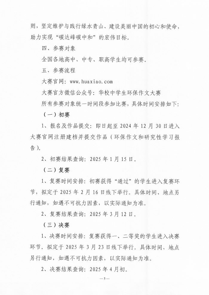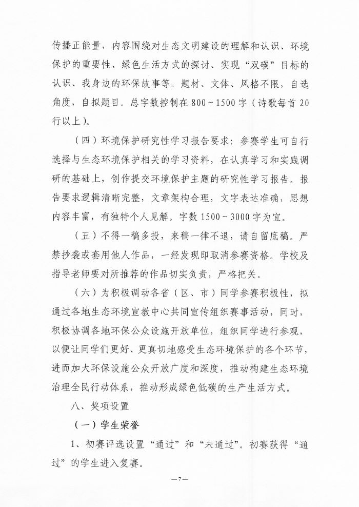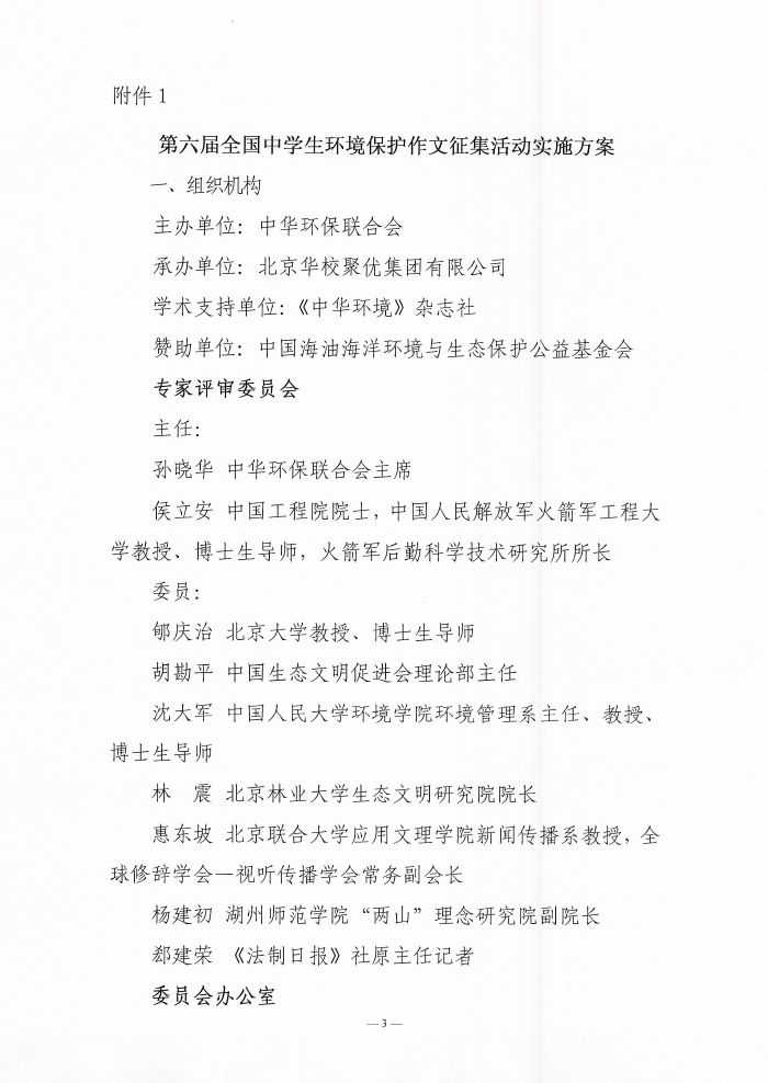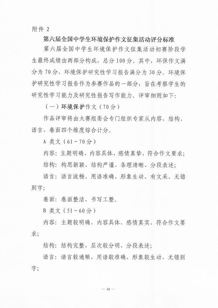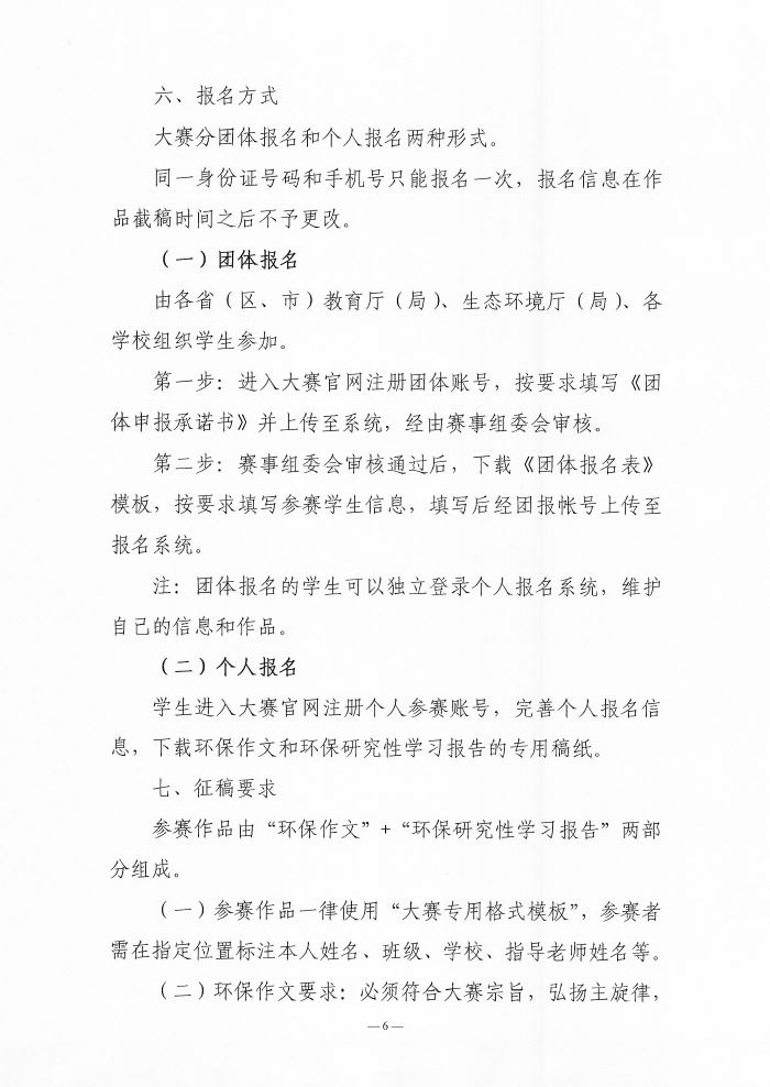 第六届全国中学生环境保护优秀作文征集活动启动通知
