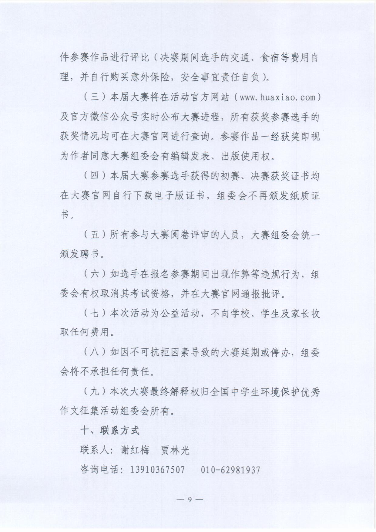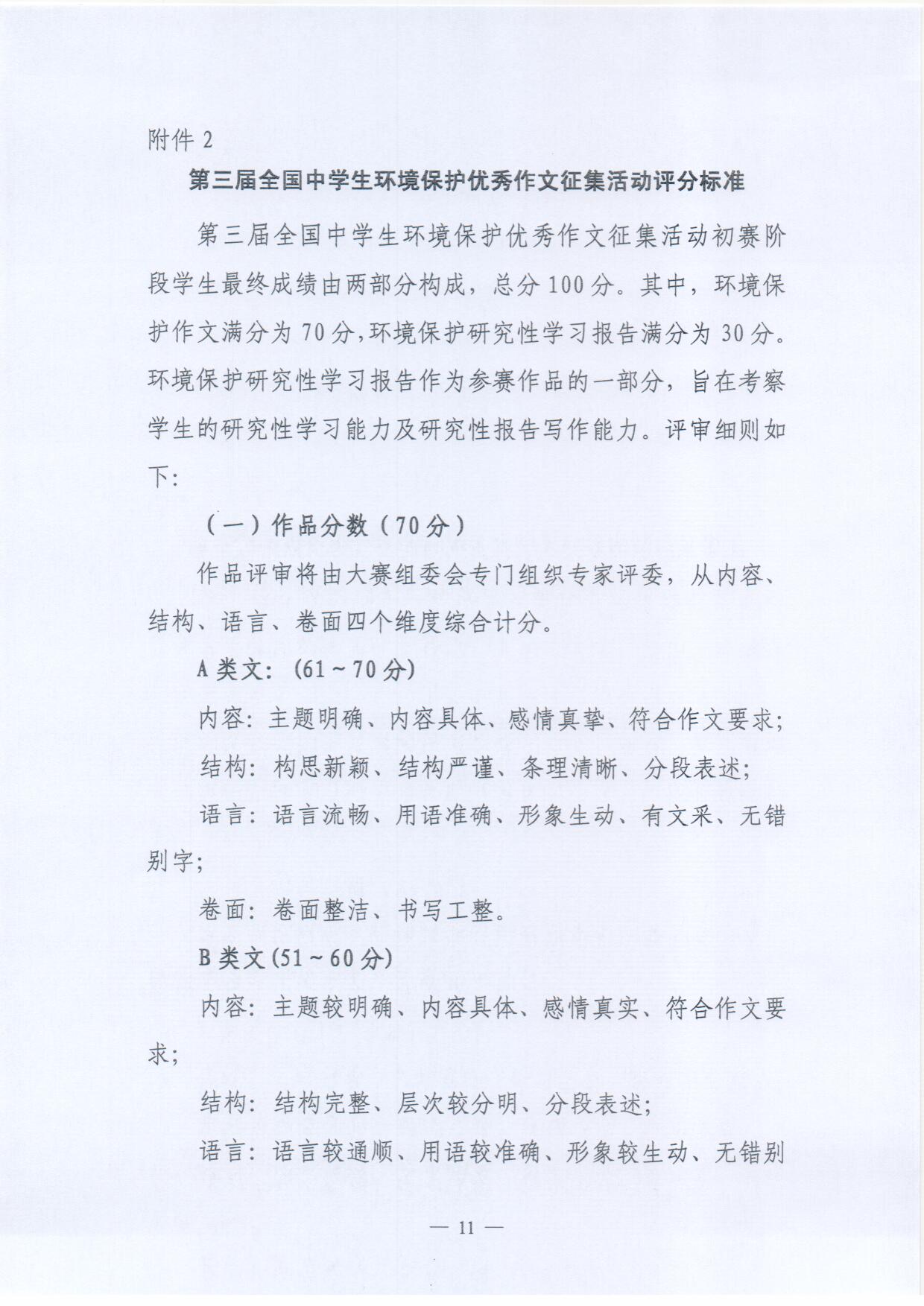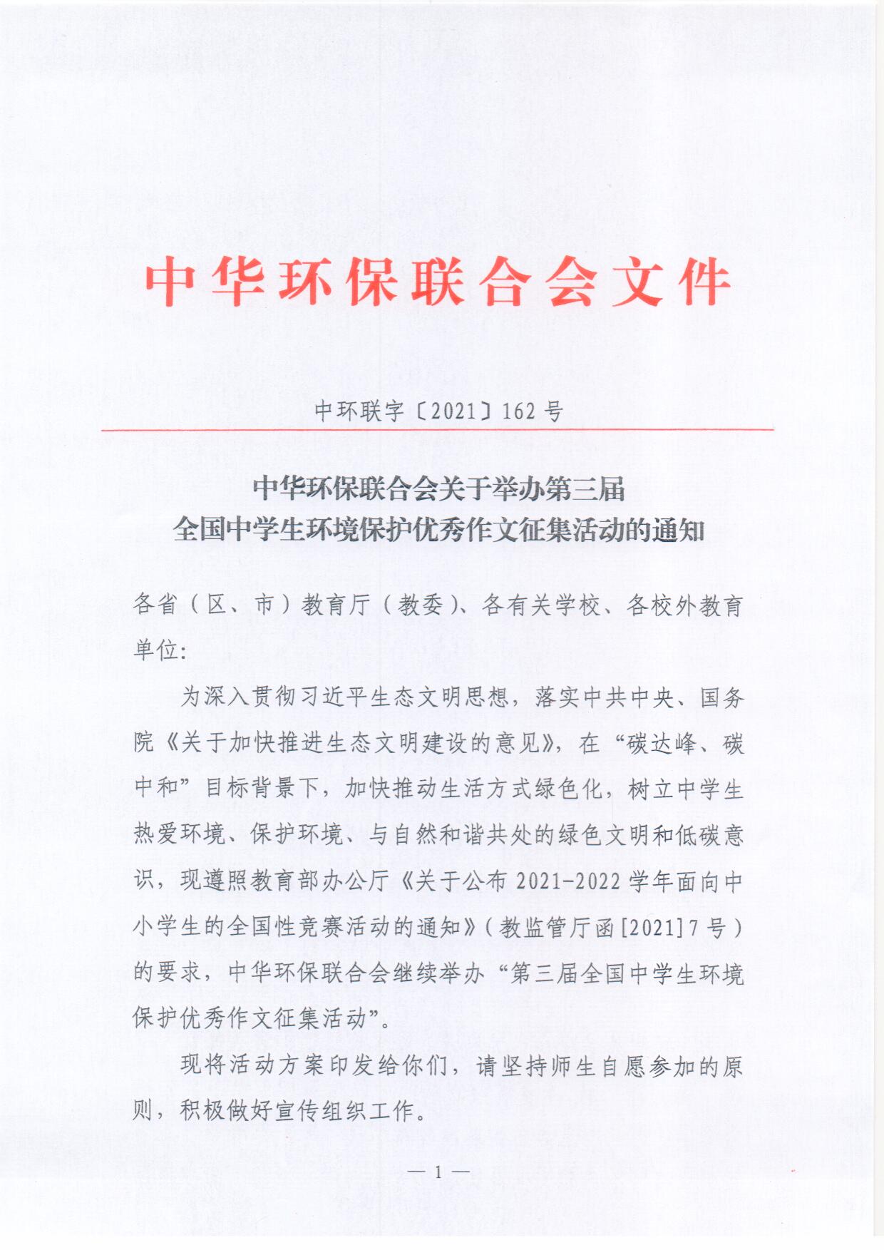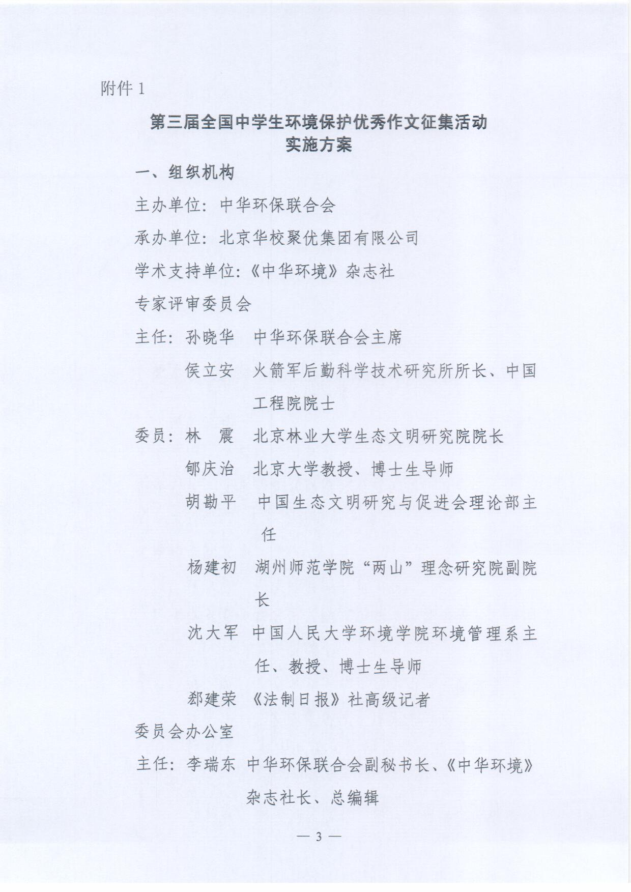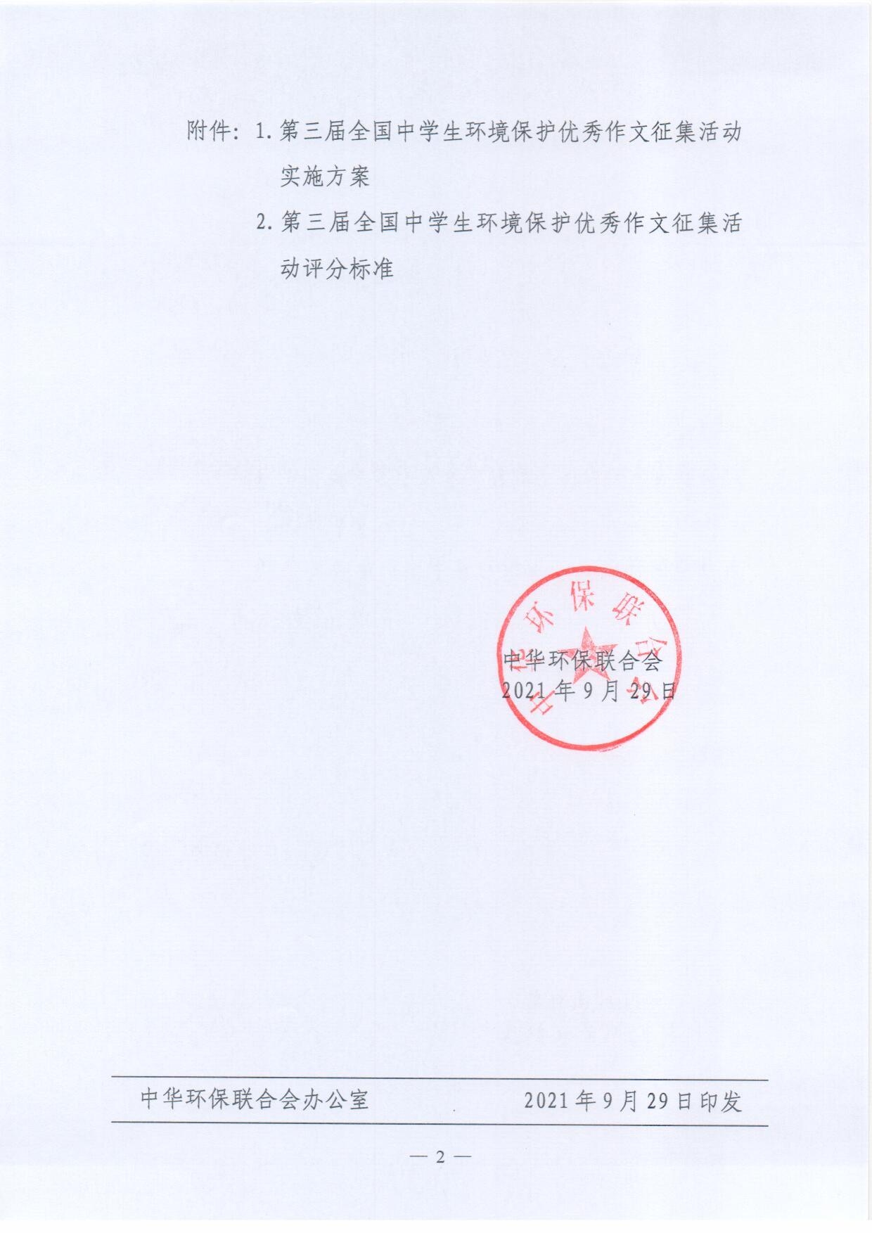 中华环保联合会发布关于举办第三届全国中学生环境保护优秀作文征集活动的通知