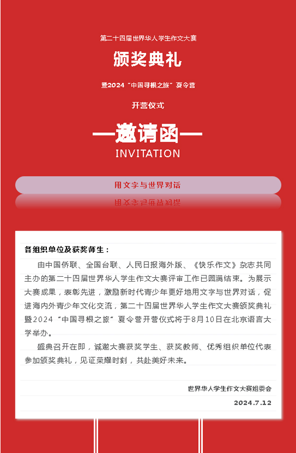 第二十四届世界华人学生作文大赛颁奖典礼邀请函