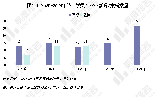 近五年统计学类专业经历了从稳健发展到急剧扩张的转变,社会需求旺盛,高校布局积极。尤其是2024年专业点新增数量猛增至27个,这几乎是前四年年均新增值的两倍。