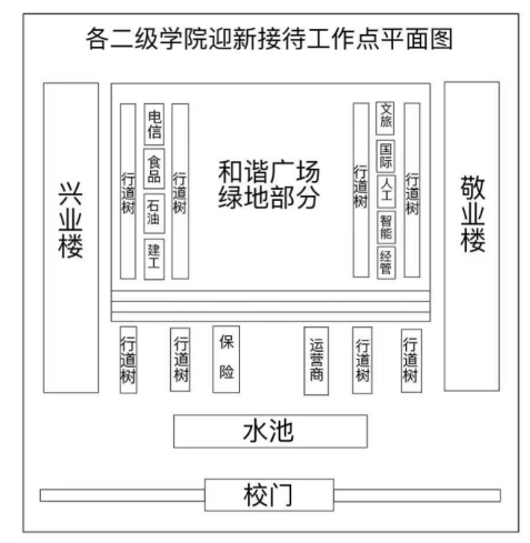 01步骤一抵达校园后,前往和谐广场(面向南门)各学院大本营,由学长学姐志愿者引导至所在学院报到点