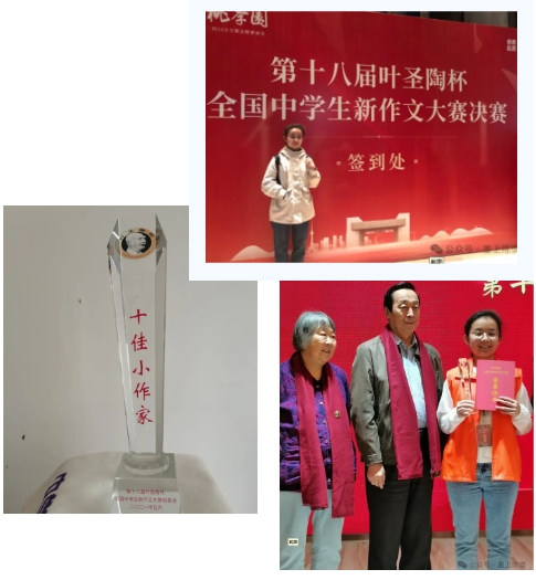 但我的心中,始终不能忘记的是叶圣陶杯大赛给予了我这一切,是叶圣陶杯的认可才让我有了不竭的动力。她轻轻地走进我的世界里,改变了我生命的轨迹。