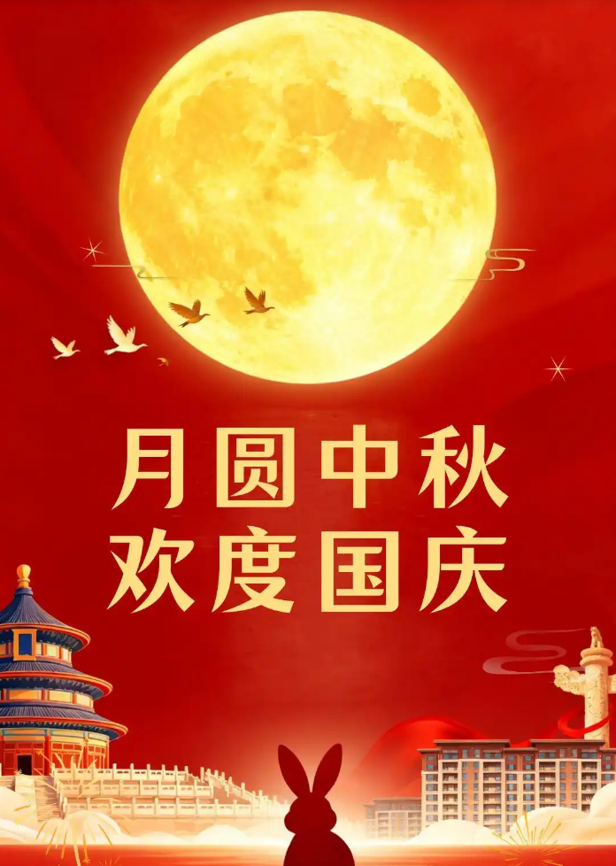 当红旗漫卷的庄严庆典与花好月圆的传统佳节相遇,是家国情怀的双重礼赞。2025,国庆喜逢中秋,双节同至。在这喜庆祥和的日子里,祝愿国富民强,吉祥安康!