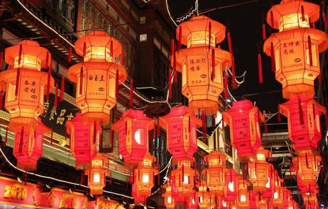 图|中秋月圆夜在公共场所挂着许多灯笼,人们都聚集在一起,猜灯笼身上写的谜语,因为是大多数年轻男女喜爱的活动,同时在这些活动上也传出爱情佳话,因此中秋猜灯谜也被衍生了一种男女相恋的形式。