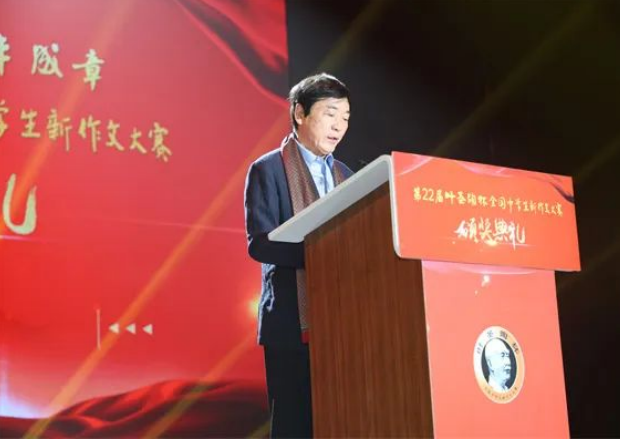 参赛学校指导教师代表、山东省临沂第四中学袁春老师在发言中祝贺选手们获奖来之不易,从初赛到决赛一路奋进,今天终于在“草房子”这片文学沃土上绽放青春。他说,大赛对学校语文教学、教师成长、学生发展及校园文化建设都有积极的推动作用,今后将继续传递大赛宗旨,发扬叶圣陶精神,为提升学生综合素养贡献更大力量。