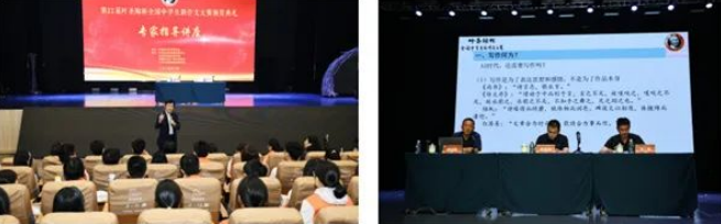 颁奖活动期间,曹文轩先生为获奖师生奉献了一场精彩的讲座。他从“跳空”“摇摆”“陡转”三个写作手法着手,结合自己的阅读与写作经验,通过大量文学名著案例解析,为同学们深入浅出地讲解了小说写作该如何去设计情节、刻画人物、怎样写出精彩的对话与独白,为青少年文学写作指出了一条新的训练路径。大赛专家评委山东大学文学院马兵、南京师范大学国际交流学院孙道功、中国传媒大学人文学院蒋成峰结合评选稿件情况,以获奖佳作为例进行了写作指导。