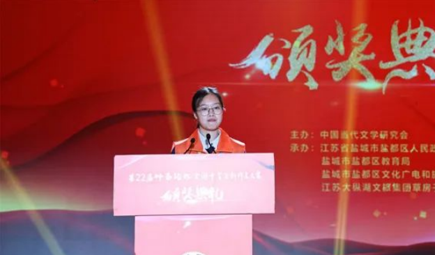 获奖选手代表、浙江省绍兴一中教育集团龙山书院的丁甚欢同学在发言时感恩大赛,称这份荣誉既是对其写作探索的至高肯定,更是激励前行的动力。她表示,获奖如嘹亮号角,提醒自己继续笔耕不辍,愿以大赛为新起点,以笔为桨、以梦为帆,在文学海洋中勇航,书写无愧于时代与青春的华彩篇章。