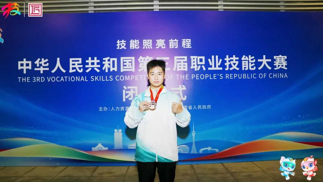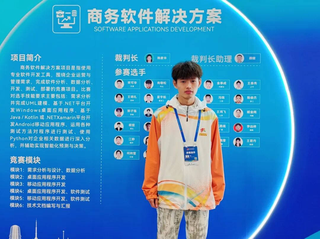 值得一提的是,物流与货运代理项目是全部106个赛项中对英语能力要求最高的比赛之一,全程采用英文。为攻克语言难关,铜牌获得者、国际经济与贸易专业的徐洪力付出了超常努力。“我一个月上的外教课可能比英语专业同学一个学期都要多,”他回忆道,除了高强度英语训练,还需背诵数百个全球重要港口的信息,熟读多本专业书籍。然而,挑战接踵而至,首次参加国赛的徐洪力在赛前不幸患上严重流感,身体持续不适的他,凭借顽强的意志力坚持完成全部赛程。“身体虽不在最佳状态,但我稳住了心态,能坚持到底,我为自己骄傲。”赛后,徐洪力这样说道。他坦言,比赛有亮点也有遗憾,这次经历让他深刻认识到“在任何情况下都必须保持冷静与专注”。展望未来,他目标明确,“希望能够入选国家集训队,力争站上世界技能大赛的舞台,为学校争光,为湖北添彩!”