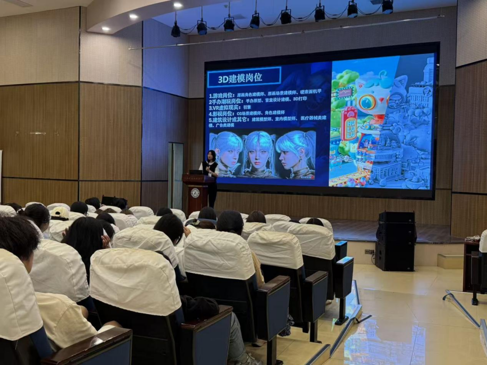 9月24日晚上七点,南京一技教育科技有限公司为金肯学院数字媒体技术专业的同学们举办了一场内容丰富、干货满满的宣讲会。此次宣讲在学校东南楼报告厅盛大举办,由专业教师贾雨晴和企业专家共同主讲,为同学们带来了关于专业学习、获奖成果以及未来职业发展的深入解读。