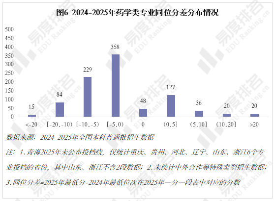 2025年73%的专业分数下降,22%的专业分数有所上升,其中35%的专业下降超过5分,8%的专业上涨超过5分,药学类专业的整体录取分数大幅下降。医药类专业的报考热度进一步降低。