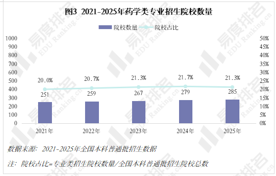 药学是高度专业化的学科,专业设置门槛高,增长动力主要来自于现有的、有实力的院校内部的结构性升级,而非新院校的涌入。