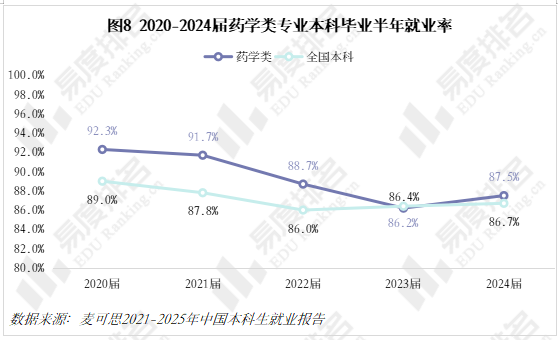 受政策、市场需求等多方面因素的影响,医药类行业正在经历一场寒冬,让本就不被学生家长看好的药学就业市场更加雪上加霜。药学类的就业率下降明显,2023-2024届毕业生的就业率与全国本科的平均水平基本持平。