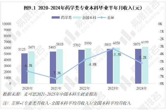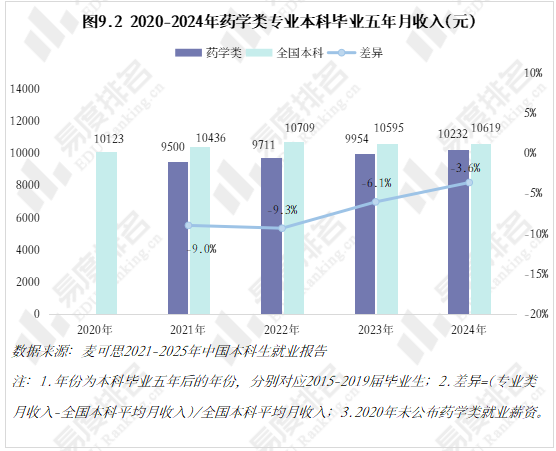 药学类毕业生的薪资持续增长,但始终低于全国平均薪资。药学是国家和社会运转的“基础设施”型行业,而非追逐风口的“高溢价”行业,其投资回报相对缓慢。