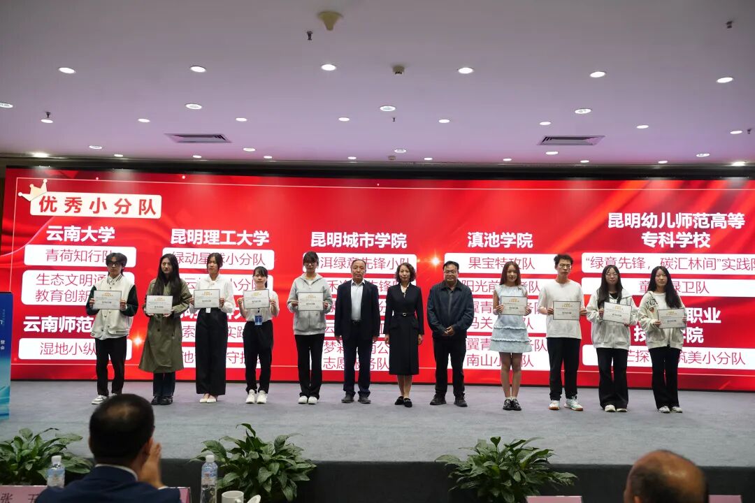 自活动启动以来,滇池学院团委积极组织团队申报,共有35支社会实践团队成功入选,在寒暑假期间深入云南省多个生态保护重点区域,围绕生物多样性保护、低碳社区宣传、高原湖泊治理等主题开展了扎实的调研与科普工作。凭借扎实的组织工作和显著的实践成效,滇池学院荣获“优秀组织单位”称号;望野协会获评“优秀社团”;“鸿鹄青年”志愿服务实践小分队、果宝特攻队、阳光前行者队、展翼青年服务队马关小分队、展翼青年服务队南山小分队5支团队获“优秀小分队”;周国丽、陈秋悦、马东聿3名教师获“优秀指导教师”;高钰雯、胡逸飞、聂家彤3名同学获“优秀志愿者”称号。