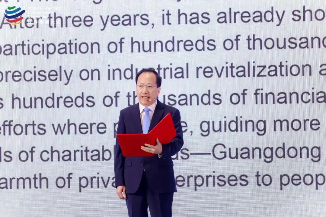 “情系桑梓‘百千万’,让我们在助力走在前列中彰显粤商担当。”梁冠军发出呼吁:“百县千镇万村高质量发展工程”历经三年已初见成效,这凝聚着广大粤商的心血,更呼唤着新的担当。“百千万工程”需要百千万群众参与,粤商不可或缺。当以“主人翁”姿态投身实践,主动聚焦产业振兴、县城提质等领域精准发力持续赋能,推动城乡融合发展迈向更深层次。“百千万工程”需要百千万真金白银支持,粤商不可替代。当以真心实意反哺家乡,有钱出钱有力出力,引导更多资源要素回流汇聚,用实打实的行动为家乡建设添砖加瓦。“百千万工程”需要百千万善心义举同行,粤商义不容辞。爱心无关大小、善行不分早晚,让我们积极投身公益慈善事业,在民生领域传递民企温暖,共同助力广东在高水平现代化建设中走在前列!