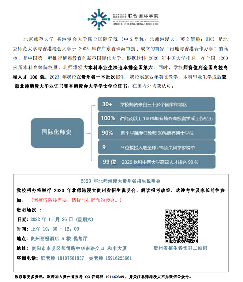 北师港浸大2023年贵州省招生说明会