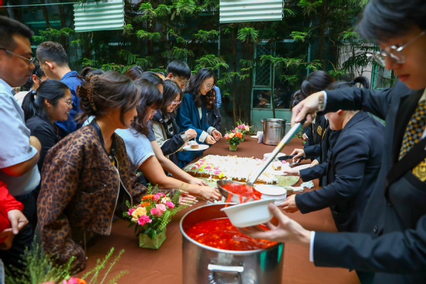 9月22日和25日,300余名师生齐聚学校青春园,品味俄式美食盛宴,体验中国茶艺文化,感受东西方文化交融在餐桌上的饮食之美、礼仪之美。罗宋汤、提拉米苏、鲤鱼馅卷心菜炖小麦等色香味俱佳的俄罗斯美食被端上品鉴台,吸引了众多师生驻足品鉴。现场气氛热烈融洽,师生们沉浸在欢声笑语中,同学们不仅能够享受味蕾的盛宴,还能够在与俄罗斯厨师的交流中了解俄罗斯美食背后的文化故事。此次活动现场服务由旅游文化学院选派酒店管理专业金钥匙方向班学生10人组成服务团队完成,学生以俄餐服务为真实场景,从会场布置到现场服务,实现沉浸式专业学习。
