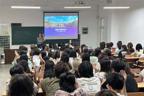 28日下午,临湖轩A1059教室里氛围热烈,师生互动不断。时尚设计学院时尚设计系主任付雪老师,为服装与服饰设计专业的新生带来了一场干货满满、精彩纷呈的专业介绍,“点燃”了同学们的学习热情。课堂上,付雪老师为同学们细致梳理了专业发展脉络,用图文展示了学院的国家级一流课程、实验室、校企合作基地及学生参加时装周和顶尖赛事的成果,详细阐述了该专业三大方向精准对接行业需求情况,并介绍了“设计+技术+营销”的三维课程图谱,以及构建的“强实践、跨学科、数字化”的教学体系。她还寄语同学们要向尚而生、向美而行,毕业时交出具有文化自信和商业价值的满意答卷。