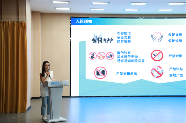 图书馆陈晨老师为成龙影视传媒学院新生进行图书馆资源与服务导览讲解。