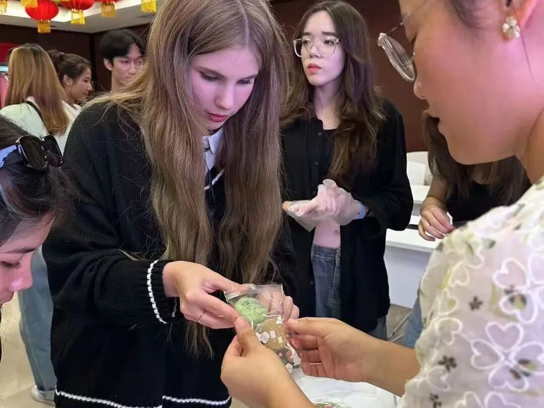 与外籍友人同揉月饼面团、