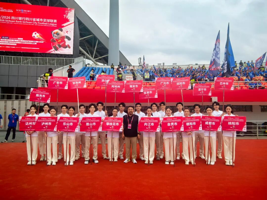 本次比赛由四川省体育局、四川省体育总会和四川省21个市(州)人民政府主办,按照“一城一队、为城市而战”的理念,参赛队伍以四川省21个市州为单位组队,球队名字以“市州+地方文旅特色”自主命名。在这场引人注目的赛事开幕式中,播音主持学院2023级摄像制作提高班师生团队应邀参加到导演组的工作当中。